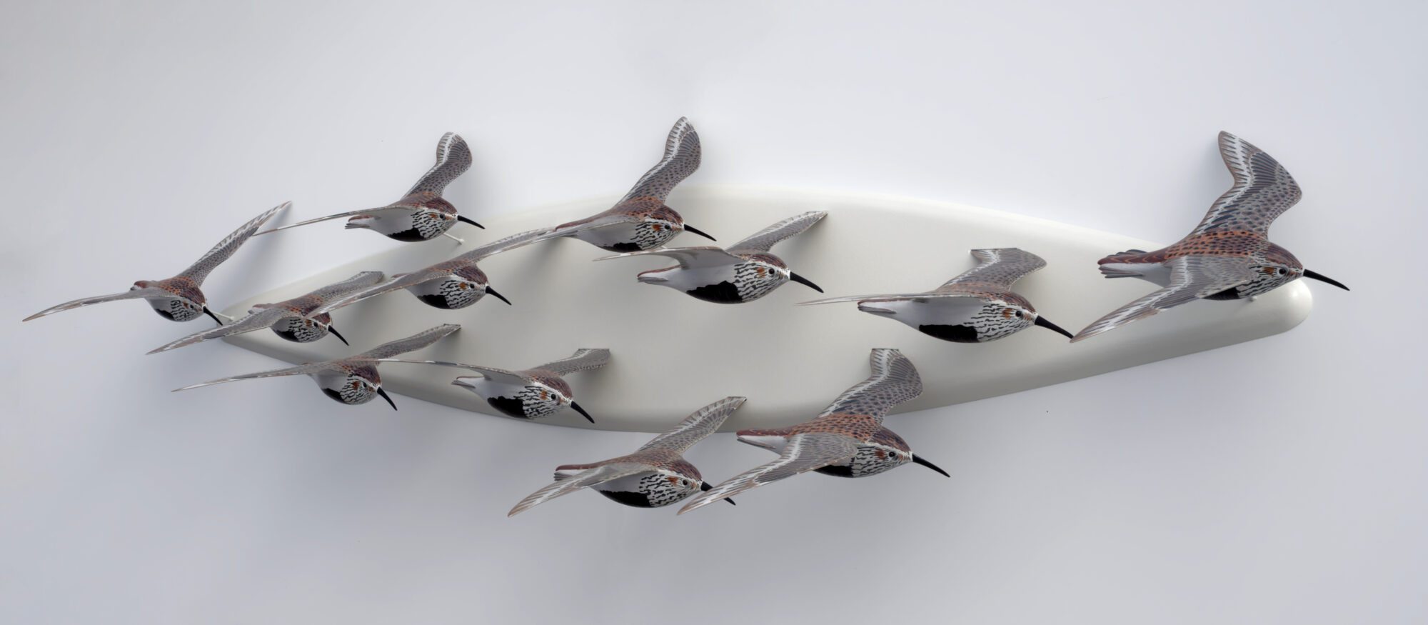 Ryleflok & Ederfuglepar fra 2023 til 25 er blevet ændret. Bemaling af ryle flokken er blevet redigeret og opsætningen er ændret til vægophæng (længde 150 cm). Ederfugleparet er reduceret til hannen som nu hænger lodret på væggen (bredde 70 cm)